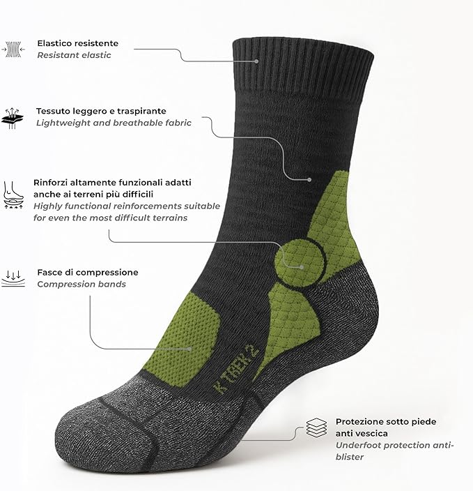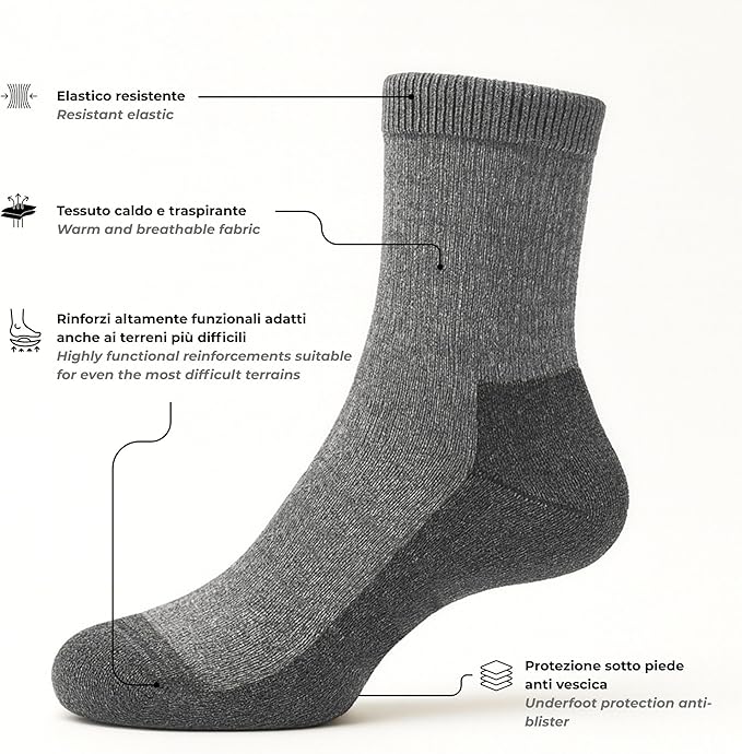 Calze tecniche in lana merino, pensate per chi vive la montagna con passione.