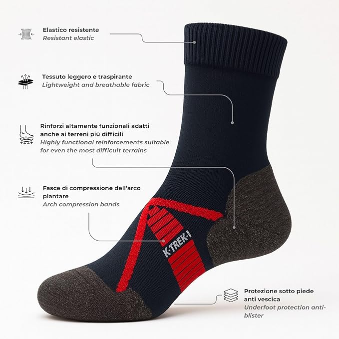 Che tu sia un appassionato di trekking, un runner incallito, o semplicemente ami le lunghe passeggiate, le calze K-Trek sono la scelta giusta. La loro leggerezza e versatilità le rendono perfette per: